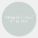 Dusty green grey Personalised wedding  Classic Round Sticker. Seal your invitation envelopes or favours with these elegant simple wedding stickers featuring your names in white on a dusty grey background. Part of a wedding collection. Check my shop to see the entire wedding suite forthis design!