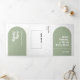 This is an all-in-one Tri-Fold Wedding Invitation that features an elegant and groovy modern minimalist boho design with a retro script font in an arch shape on a dusty green background along with a photo and QR Code. The simplicity of this design adds a touch of elegance to your wedding. It works well with many wedding themes and definitely a great addition to your wedding. Just customise the names and wording in a few easy steps in the text fields and personalise the all-in-one tri-fold invitation card with your photo of the happy couple and replace the QR Codes with yours to give your invitation a nice personal touch. This invitation will save you money to send everything at once. It has a RSVP postcard that your guest can just send it back. Just simply fold each invitation card into the outlined shape -- seal and send to your guests. No envelope is needed for shipping -- just postage.