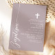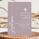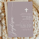 Celebrate the sacred occasion of a baptism with this elegant dusty lavender purple invitation. Featuring a minimalist design with modern script and a delicate cross, this invitation is perfect for inviting friends and family to join in this special event. The soft colour and simple, clean lines add a touch of sophistication and grace, making it ideal for such a meaningful celebration. Customise the details to create a unique and memorable invitation for your child's baptism.