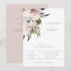 Chic and simple typography design, wedding invitation that features watercolor floral bouquets in shades of mauve with flowing foliage. Back of card features template space for additional details.
