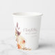 Dusty orange fall floral bridal shower paper cups . These wedding shower paper cups feature an autumn fall foliage floral theme. Burnt orange, terracotta, purple, tan and beige tones are incorporated throughout the rose floral design. The perfect paper cups for a boho fall bridal shower.