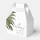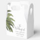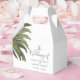 A unique palm tree-themed set of white gift favour boxes tailored specifically to your future wedding on the beautiful coast, island or even a summertime event. There is your wedding details on the front and your unique wedding guests thank you message on the reverse side.