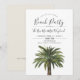 A post-wedding beach party invitation featuring a watercolor image of a single coastal palm tree. Underneath are your unique party details.