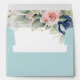 Design features an elegant water colour navy blue & blush pink roses inside with a printed light dusty blue shade on the exterior with a black modern font return address.