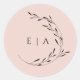 Dusty Pink Blush Minimal Monogram Wreath Envelope Classic Round Sticker