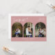 This save the date invitation features an elegant modern minimalist style of a three (tri) photo collage in an arch shape with a modern calligraphy of the wording "Save the Date" and elegant Serif fonts for a clean minimalist and modern look on a dusty pink background, which is a beautiful way to inform about your upcoming wedding. Announce to your family and friends you are getting married with this invitation and add a personal touch with beautiful pictures of you and your soon-to-be better half. The simplicity of this design adds a touch of elegance to your wedding. It works well with many wedding themes and definitely a great addition to your wedding. Just customize the names and wording in a few easy steps and personalize the invitation card with your photo of the happy couple and replace the QR Code with yours.