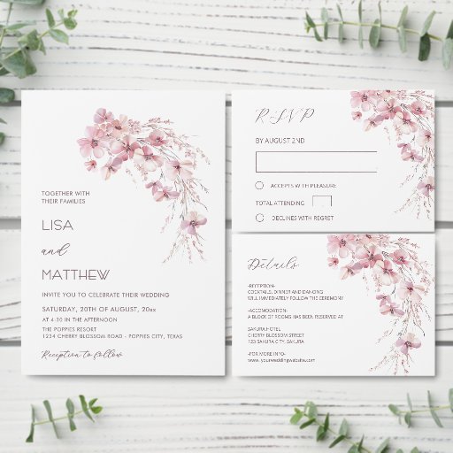 Dusty pink boho floral wedding response card. Matching invitation available.