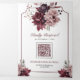 Dusty Pink Burgundy Floral Frame QR Code Wedding Tri-Fold Invitation