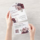 Dusty Pink Burgundy Floral QR Code Wedding All In One Invitation
