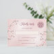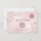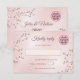 Dusty pink cherry blossoms on a shimmering blush pink background and a dusty rose double happiness symbol. RSVP Chinese Wedding Card with bride and groom names at the backside.