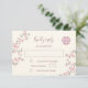 Dusty pink cherry blossoms on a cream background and a dusty pink double happiness symbol. RSVP Chinese Wedding Card with bride and groom names at the backside.