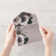 AVAILABLE WITH OR WITHOUT A QR CODE OR WITH OR WITHOUT DINNER SELECTION OPTIONS. This design features a dusty mauve pink and silver marbleised background with a beautiful floral side spray of palest lavender, white, green, and pale pink. Created by Simply Farmhouse Press.