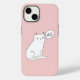 Dusty Pink Funny White Cat Drawing Hello Case-Mate iPhone Case