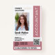 Dusty Pink ID Badge Photo Office Worker. Personalised accountant ID - an elegant identification badge with your QR code, photo, name, job title, and other details - if required.