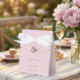 This personalised wedding favour box is a sweet little detail your guests will love. With a soft blush design, delicate floral artwork, and your names and date printed on the front, it’s perfect for holding treats, small gifts, or keepsakes. The crisp white satin ribbon ties it all together—literally—adding a simple, elegant finish. Whether you're filling it with chocolates, cookies, or something meaningful, this box makes each thank-you feel extra thoughtful and personal.