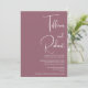 Elevate your wedding stationery with the Dusty Pink Minimalist Wedding Invitation. Featuring a soft dusty pink background with elegant white text, this invitation showcases the couple's names, wedding date, and venue on the front in a clean, modern design. The back provides additional wedding details, ensuring guests have everything they need in a stylish and organised format. Perfect for romantic, boho, or modern weddings, this invitation adds a touch of sophistication and warmth to your special day.