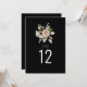 These elegant floral table number cards feature a modern watercolor design with dusty pink peach rose blooms and leaves on black background. They are double sided. Change the number text as required. Matching items available.