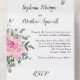 These all in one wedding invitations feature a modern watercolor floral design with dusty pink roses and eucalyptus leaf foliage. Personalise with your text. Other matching stationery and wedding reception products also available.