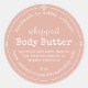 Dusty Pink Script Handmade Body Butter Label round sticker featuring a soft dusty pink background with white script and serif typography. The clean, balanced design clearly presents your business name, product title, ingredients, and weight, making it easy for customers to read at a glance. Ideal for handmade skincare jars, organic body butter packaging, market displays, gift sets, and small business branding. Easily personalize with your details.