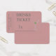 Personalised dusty pink and white Drink Ticket Wedding Reception Card