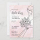 This abstract dusty pink watercolor background, featuring a romantic bride with roses line drawing is the perfect backdrop for your bridal shower invitation. Just click the edit/personalise button to customise this design.