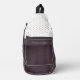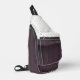 This sling bag features a dusty plum band with a white personalised name separating the tawny polka dots up top from dusty plum on plum stripes below.
