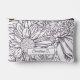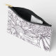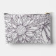 This cosmetics bag features an oversized line art drawing of chrysanthemums in dusty pink over a white background on both sides and with a personalized name on one side. Original art from Dogwood & Thistle.