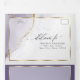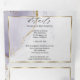 Dusty purple and gold soft marbled watercolor with glitzy gold highlights - each section highlighted with a sheer white gold framed overlay, on the front centre is your photo accented with a gold frame and behind the sheer white overlay for an esoteric appeal a beautiful modern abstract design for an all in one wedding invitation complete with pre-addressed detachable meal choice rsvp for your guests to easily mail back - a stunning all in one wedding invitation -