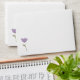Add a special touch to your wedding invitation mailing with custom printed envelopes. These envelopes have a simple dusty purple flower illustration on the front and a coordinating floral pattern on the inside. The envelope flap is ready to be customised with your name and return address.