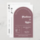 This groovy invitation features an elegant modern minimalist boho design with a retro font in an arch shape photo on the back and on the front of the card in a dusty purple colour to give your invitation a modern and clean look. The simplicity of this design adds a touch of elegance to your wedding. It works well with many wedding themes and definitely a great addition to your wedding. Just customise the names and wording in a few easy steps and personalise the invitation card with your photo of the happy couple and replace the QR Code with yours on the back of the invitation to give your invitation a nice personal touch.