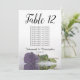 These beautiful table number cards will make it easy for your guests to find their seats at your wedding reception. They feature a simple yet elegant design with script calligraphy lettering and a single long-stemmed dusty purple coloured rose lying on its side reflecting in water. The card includes a seating chart with 10 names. There is also space for the couple's names and wedding date. This card is available in a variety of sizes and is larger than our standard table number cards.