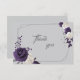 dusty purple and white flowers on silver geometric frame grey thank you card