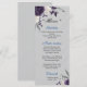 Dusty purple and white flowers silver leaves wedding menu