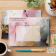 Wedding Envelope | Hand painted marbled splash in shades of gold, pale pink and charcoal black - and a gold frame with a sheer white centre highlighting the addressee text.