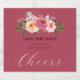 Elegant dusty rose blush pink floral wedding save-the-date sparkling wine bottle label featuring a bouquet of dusty rose, blush pink, rose flowers, buds, eucalyptus leaves, and "Cheers" script. Personalise with your wedding details and please find matching designs from my "DreamHut" store.