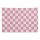 Pink and white checkerboard pattern with evenly spaced squares. The design is simple, creating a playful and retro feel.