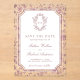 Elegant wedding save the date featuring a beautiful victorian crest with intricate chinoiserie pattern. Simply add your event details on this easy-to-use template to make it a one-of-a-kind save the date card.