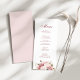 An elegant dusty rose hydrangea wedding menu card featuring soft blush floral accents and refined typography. Perfect for romantic garden receptions and spring wedding celebrations.