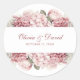 A coordinating dusty rose hydrangea round wedding sticker featuring soft blush florals and romantic script typography. Perfect for sealing envelopes, decorating favours or adding a cohesive botanical touch to your wedding stationery.