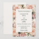 A soft ivory colored background decorated with dusty rose and mauve colored florals. Personalize and add your names and the details. Green colored text.