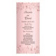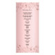 An elegant and modern wedding program. Templates for your names, dates, details of the ceremony and the party. A dusty rose, pink faux metallic looking background, decorated with rose gold shining stars. Black coloured letters.