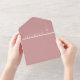 This all-in-one minimalist wedding invitation features modern typography on a dusty rose background. The invitation includes a perforated RSVP card with your wedding website QR code. Designed by Thisisnotme©