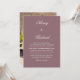 This is an elegant wedding invitation set that has a beautiful calligraphy font that features you and your future spouse’s name. The dusty rose colour brings a nice pop to your invitation so it stands out among the rest! We added a backside for you to add an engagement photo to give your invitation an even more personal touch!