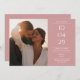 A modern minimalist save-the-date card featuring your special date, photo and wedding details set in classic, chic typography on a dusty rose background. Designed by Thisisnotme©