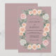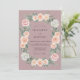This design features lush pink roses and creamy white hydrangeas nestled among delicate sage green foliage. Set against a warm dusty rose background, these botanical elements create a romantic and serene atmosphere. The muted colour palette of peach, ivory, and mauve provides an elegant aesthetic for a spring or summer event.