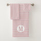 Dusty rose pink and white stripes and monogram bathroom towel set.