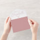 This all-in-one minimalist dusty rose wedding invitation features elegant script typography. The invitation includes a perforated RSVP card with your wedding website QR code. Designed by Thisisnotme©