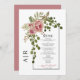 This elegant wedding menu card is adorned with a delicate arch frame featuring dusty rose pink watercolor flowers and leaves in the left corner, as well as your personalised initials with beautiful script typography. The card is perfect for any special occasion, such as a spring wedding, and can be customised to your exact specifications. With its timeless design, this card will be a beautiful memento that your guests can keep for years to come.