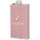 Dusty Rose Pink Fox And Golf Ball Custom Name Hip Flask