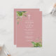 Dusty Rose Pink Greenery Monogram Baptism Invitation